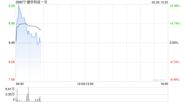 健世科技-B(09877)早盘一度涨超8%,截至发稿 ,涨幅现回落,微涨0.24%,报8.50港元 ,成交额343.21万港元。