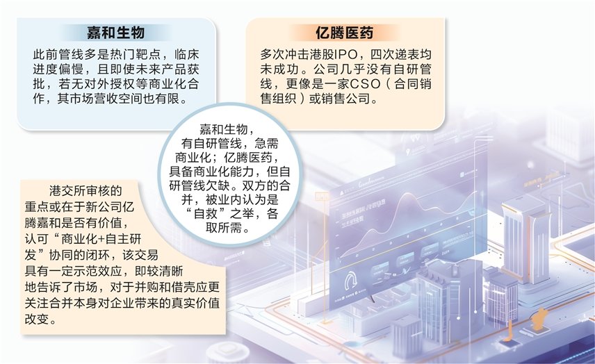 嘉和生物 ,有自研管线,急需商业化;亿腾医药,具备商业化能力 ,但自研管线欠缺 。双方的合并,被业内认为是“自救 ”之举,各取所需。