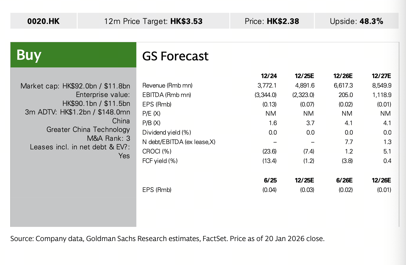高盛给予商汤“买入”评级 图源:高盛