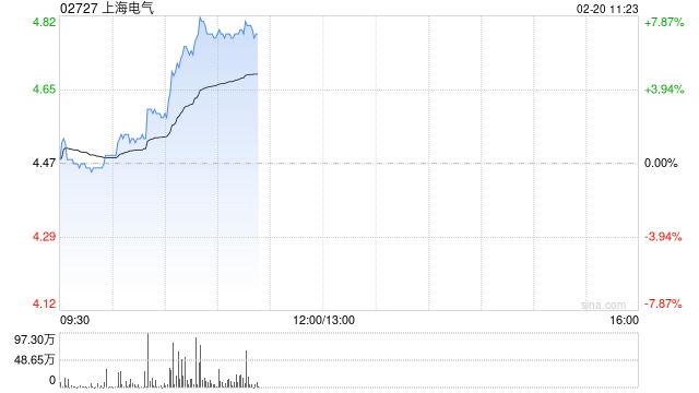 电力设备股早盘走高 ,截至发稿,上海电气(02727)上涨7.16%,报4.79港元;哈尔滨电气(01133)上涨4.19% ,报23.86港元;东方电气(01072)上涨2.86%,报33.58港元。